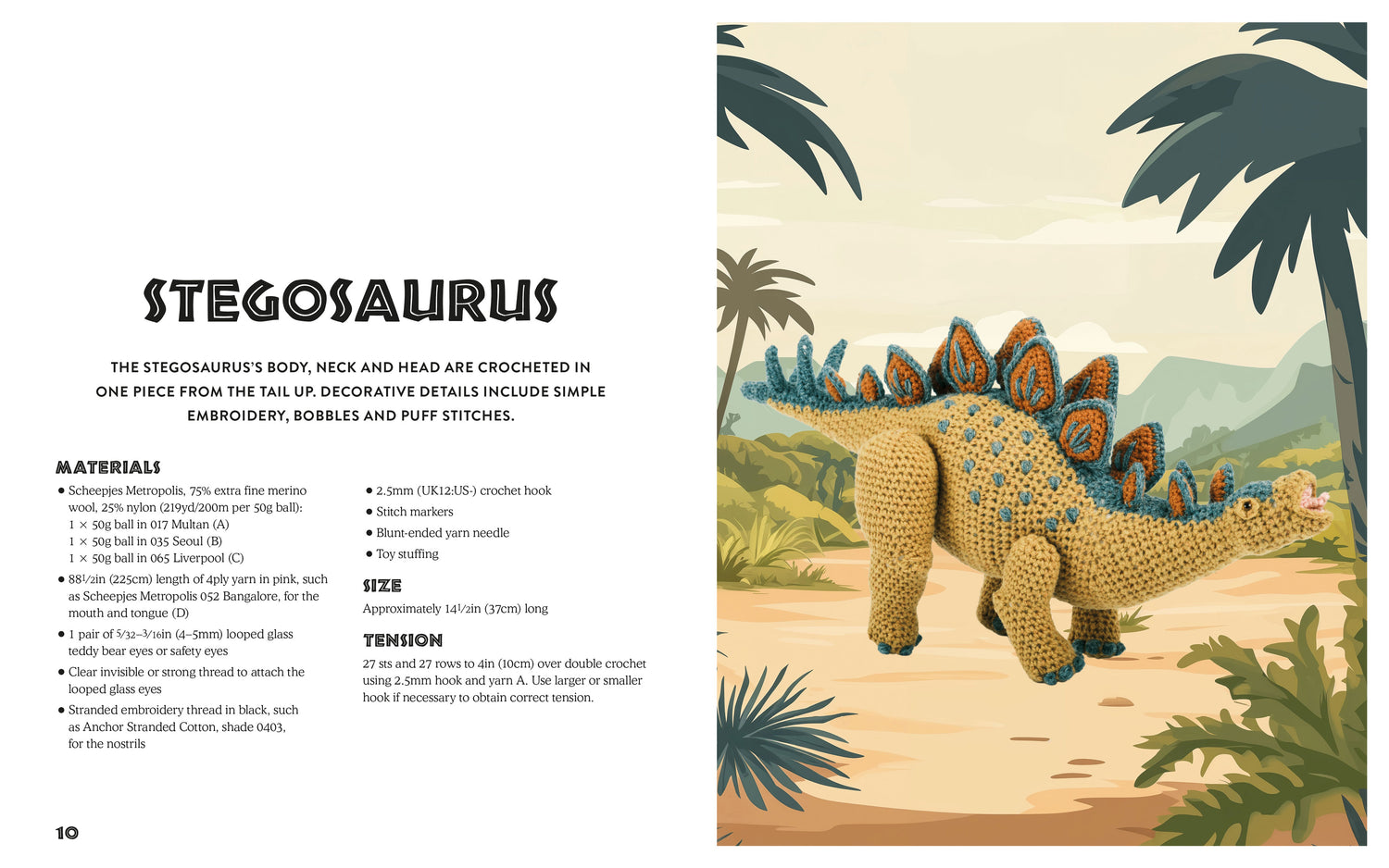 This amazing collection of crocheted dinosaurs will enchant children and adults alike. Inside this fun, colorful book there are ten Jurassic giants to choose from. Each project contains detailed, easy-to-follow patterns, photographs and hand-drawn charts. There is also an extensive techniques section explaining all the stitches and techniques needed to bring these prehistoric creatures to life.