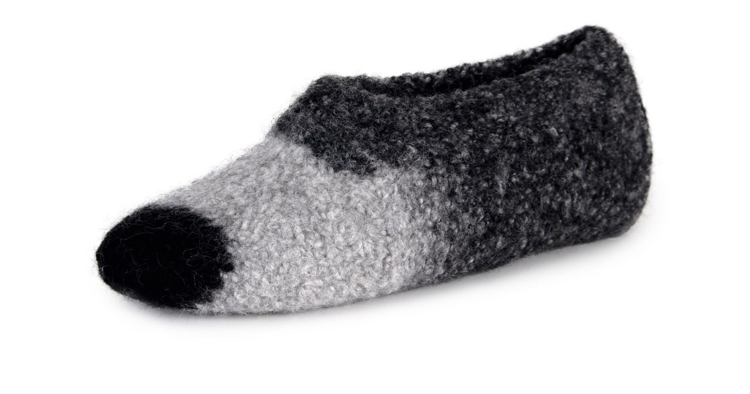 A unique slipper yarn that knits up in a chunky weight and felts into a cozy pair of slippers. These toe-up felted slippers are quick and easy to make with just one ball, you can create a pair in small, medium or large. These handmade slippers are warm, thoughtful gift for the whole family. 100% Mulesing Free Wool. 218 yds. per 7 oz. ball. Requires needles size 10.