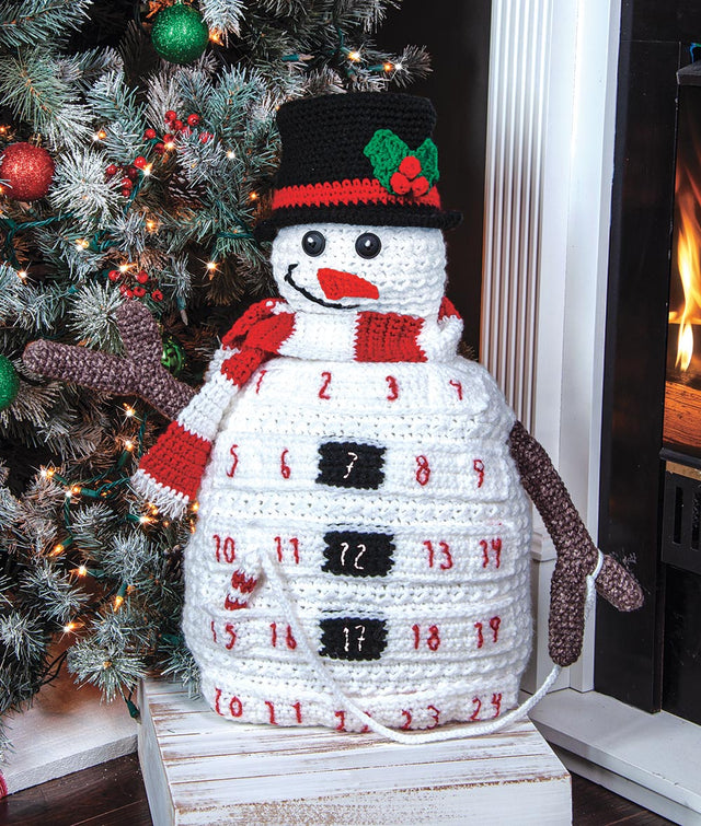 This adorable snowman will help you count down the days until Christmas! Kit includes Mary Maxim Starlette yarn. Requires crochet hook I-9 and polyfill. Size 24" tall.