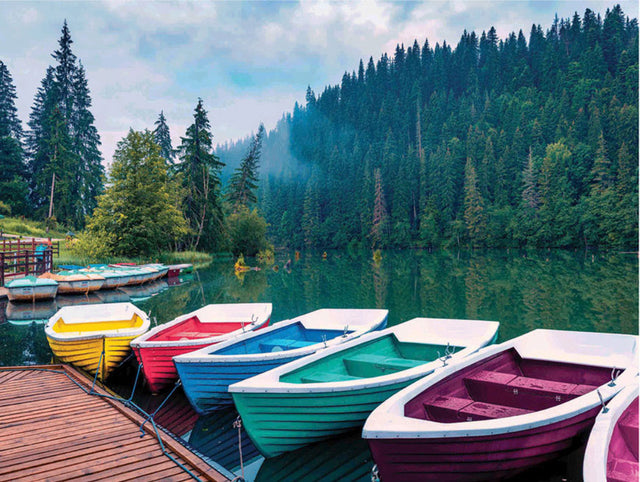 Bring the vibrant charm of Lacu Rosu Lake to your puzzle time with this colorful 1000-piece jigsaw! Featuring cheerful rowboats docked peacefully on sparkling water against a lush forest backdrop, this 27 x 20" puzzle offers hours of playful fun and a satisfying challenge. Perfect for nature lovers and puzzle enthusiasts alike, it transforms your space into a serene lakeside retreat piece by piece. Dive in and watch the scene come alive!