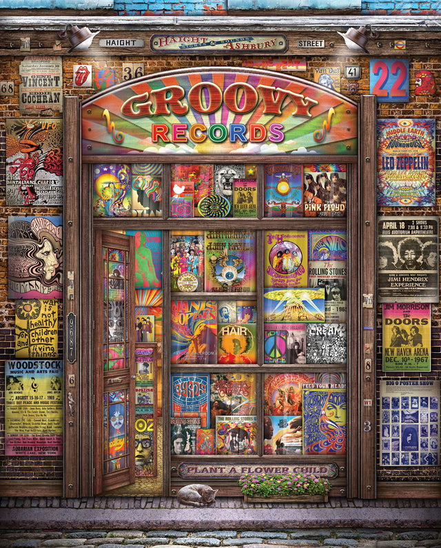 Step into a world of music nostalgia with the Groovy Records Jigsaw Puzzle. Featuring a vibrant record store storefront adorned with iconic album covers, this 1000-piece puzzle measures 24 x 30 inches, offering a satisfying challenge for puzzle lovers. Perfect for music fans and puzzle enthusiasts alike, it brings hours of engaging fun while celebrating classic vinyl culture. Assemble the scene and relive the groove one piece at a time.