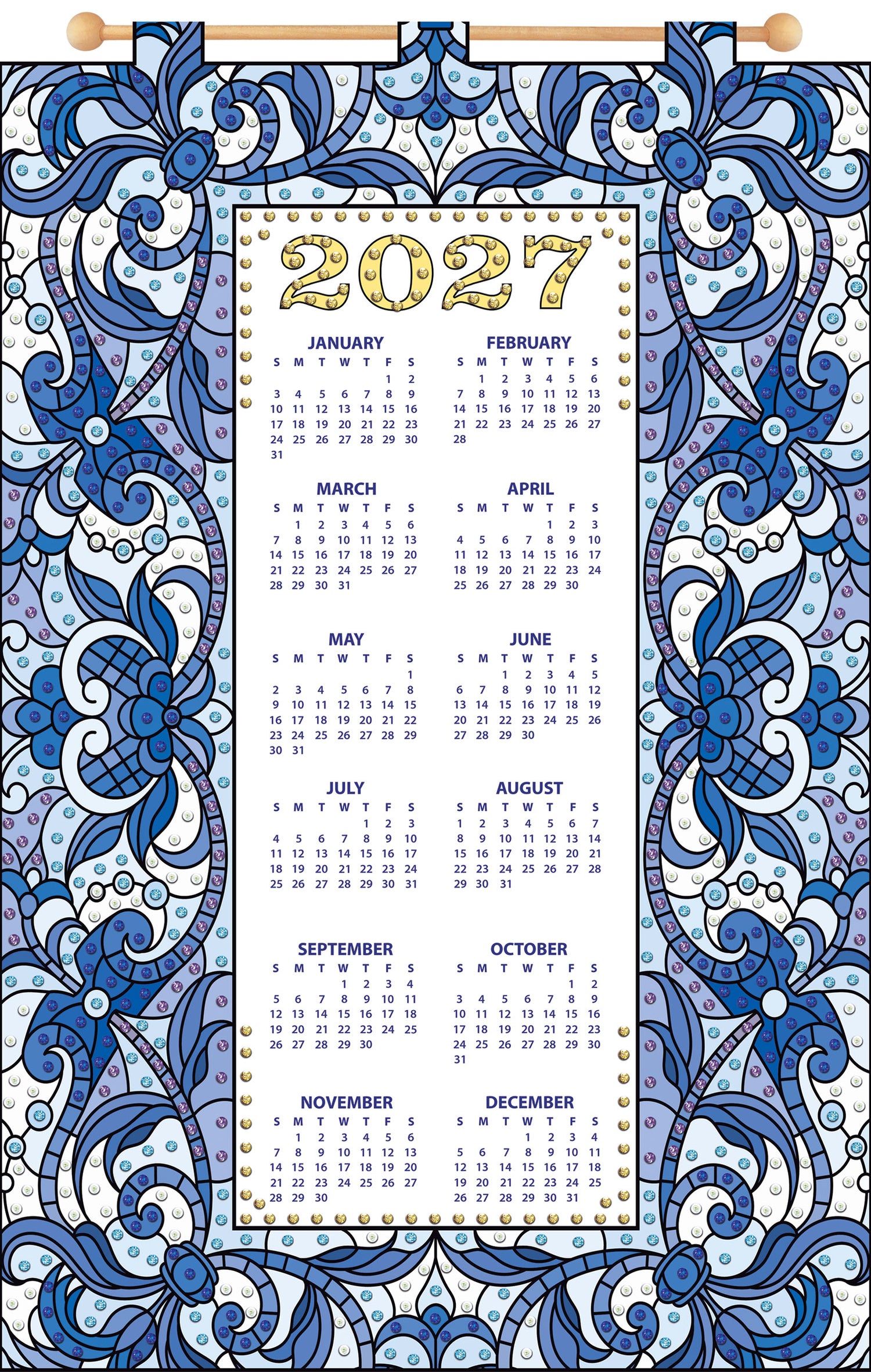 Blue Border 2027 Felt Sequin Calendar