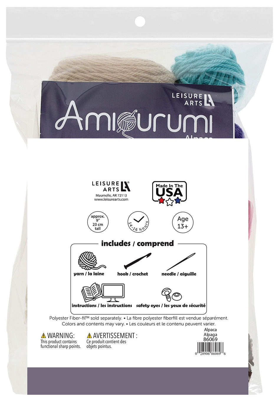 Enjoy a creative and relaxing activity while crocheting this adorable alpaca or give it as a unique and thoughtful gift to someone special. This intermediate kit guides you through crafting your very own cute and fluffy alpaca, complete with a gorgeous flower-filled mane. The kit includes yarn, crochet hook, needle, safety eyes and detailed instructions. Polyfill not included. Approx. size 9" tall.