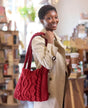 Whip up a gorgeous cabled tote that's ready for all your adventures! Whether you're hitting the shops, embarking on a road trip, or cooling your heels at an appointment, this pattern lets you craft the perfect companion for your needlework on the move. Your next project awaits—stitch it, carry it, love it! Materials List: Premier Basix Super Bulky yarn (98 yds/5.3 oz) Garnet (4 balls), knitting needles size U.S. 11 (8 mm), cable needle, and stitch holder. Finished size 17 W x 12 H (not including straps)—Intermediate knit.