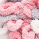 These super bulky weight yarns are a popular choice for many DIY enthusiasts as they allow for quick projects with a modern, bulky look. These yarns are suitable for arm knitting and finger crochet, where the yarn is looped around the arm/finger to create a knit fabric without the need for a hook or needles. Jumbo weight yarns can also be combined with lighter weight yarns (DK weight yarn) or other super bulky yarns (fleece yarn and Bernat chunky yarn) for an interesting textural play. For knitting or crocheting with needles & hooks, check the label and your pattern for recommended hook and needle sizes as it may vary depending on the project.