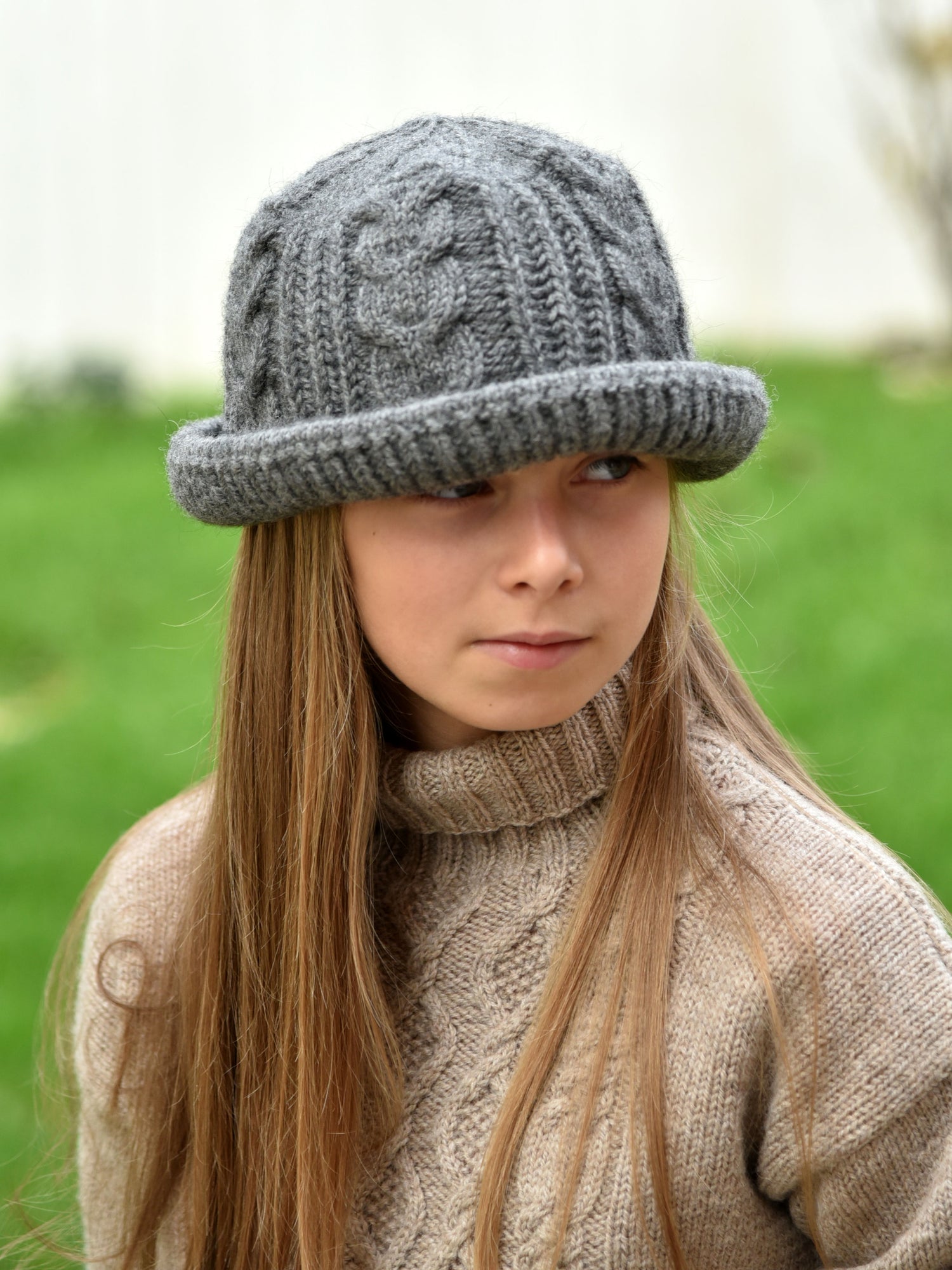 Designed by Tatsiana Matsiuk. Brim of hat is knitted double stranded, body is knit single stranded. Kit includes Mary Maxim Starlette yarn and pattern. Requires 24" circ. needle size 5, 16" circ. needle size 5, double pt. needles size 5 and needles size 7. Available in baby-adult large. Intermediate Knit.