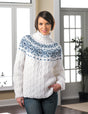 Bring this charming Fair Isle yoke pullover to life with our signature graph-style pattern! Knit a timeless graphic design into a gorgeously textured sweater that doubles as wearable art. Designed using Mary Maxim Starlette worsted-weight yarn, which offered 190 yds per 3.5 oz skein at the time. You can easily swap in your favorite worsted option from our colorful collection. Keep in mind, yardages can vary. Materials List: MC Sz 30-36 (8 balls), Sz 38-44 (9 balls). All sizes: CC Med Blue and Dk Blue (1 ball each). 29" Circular needle size U.S. 6 (4 mm) and 8 (5 mm). Also requires double-point needles size 6 (4 mm) and 8 (5 mm). Fits sizes 30-32, 34-36, 38-40, 42-44—Intermediate knit.