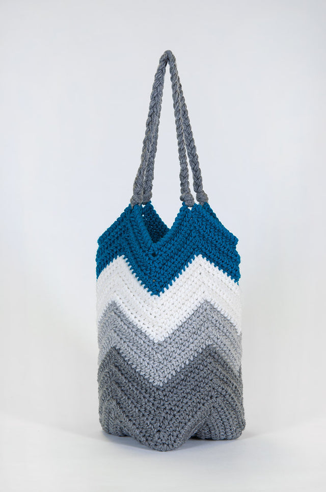 Unleash your creativity with our one-of-a-kind pattern for a zigzag-inspired tote bag. This unique design was crafted exclusively for the Mary Maxim Crochet Club in 2020, utilizing the soft and versatile Maxi Delekat worsted-weight yarns, each skein containing 132 yards of yarn within 3.5 ounces. Choose from our wide range of worsted yarns to make it truly your own. Just remember, yardages may vary. Materials List: Med Grey (2 balls), Pale Grey, White and Turquoise (1 ball each) and crochet hook size J/10 (6 mm). Finished size: 13 x 15.5" (33 x 39.5 cm). Intermediate crochet.