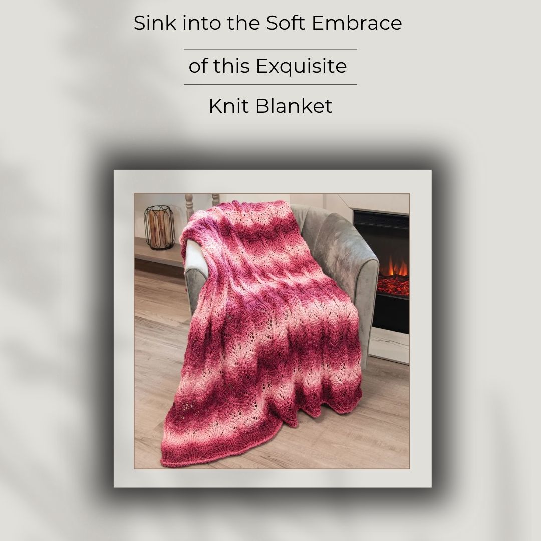 Sink into the soft embrace of this exquisite knit blanket. Kit includes Bag-O-Day Crochet Tonal Hues yarn and pattern. Requires 32" circ. needle size 9. Size 43 x 53". Intermediate Knit.