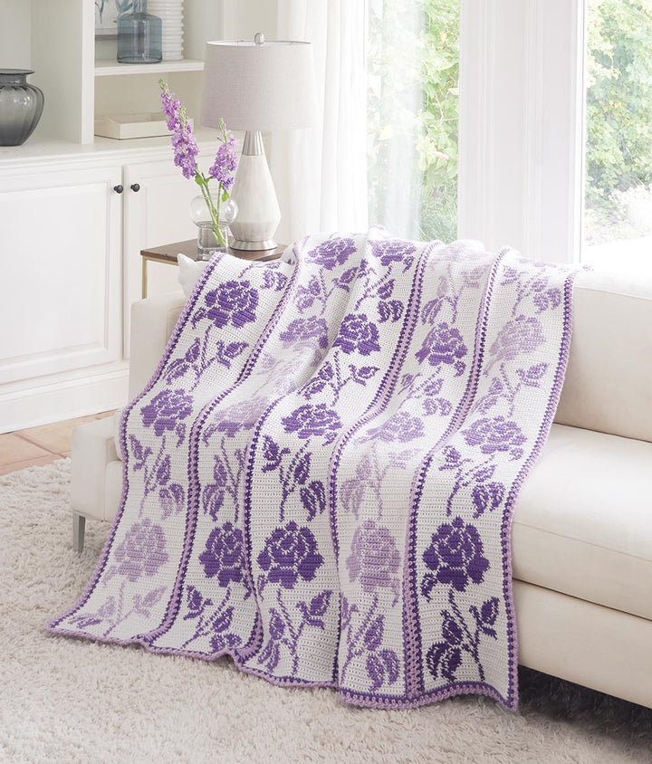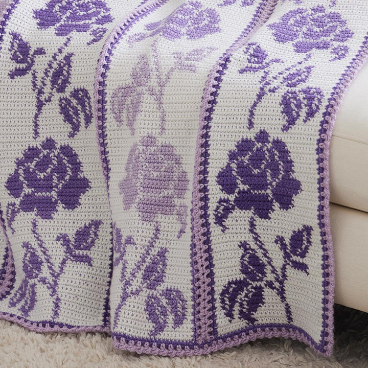 Bed of Roses Afghan - Violet Ombre/Soft White/Pale Plum is backordered and your entire order will ship as soon as it is back in stock.