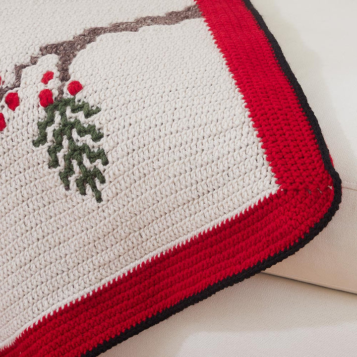 This exclusive afghan was designed by Cyndie Birdsong. It is crocheted with the overlay mosaic method that creates rich details in this stunning design. A beautiful blanket to display at Christmas or throughout the year. Kit includes worsted weight yarns and pattern. Requires crochet hook I-9 (5.5 mm). Size 47" x 60". Intermediate crochet.