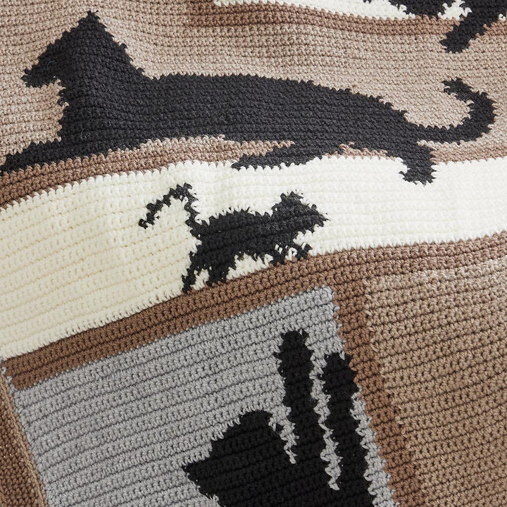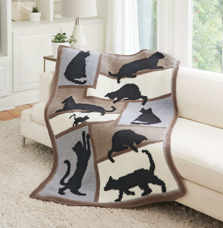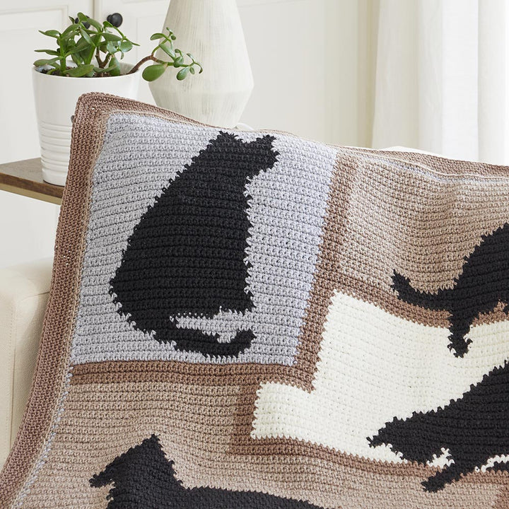 The perfect gift for the cat lover in your life. Kit includes worsted weight yarn and pattern. Requires crochet hook J-10 (6 mm). Size 46.5" x 58.5". Intermediate crochet.