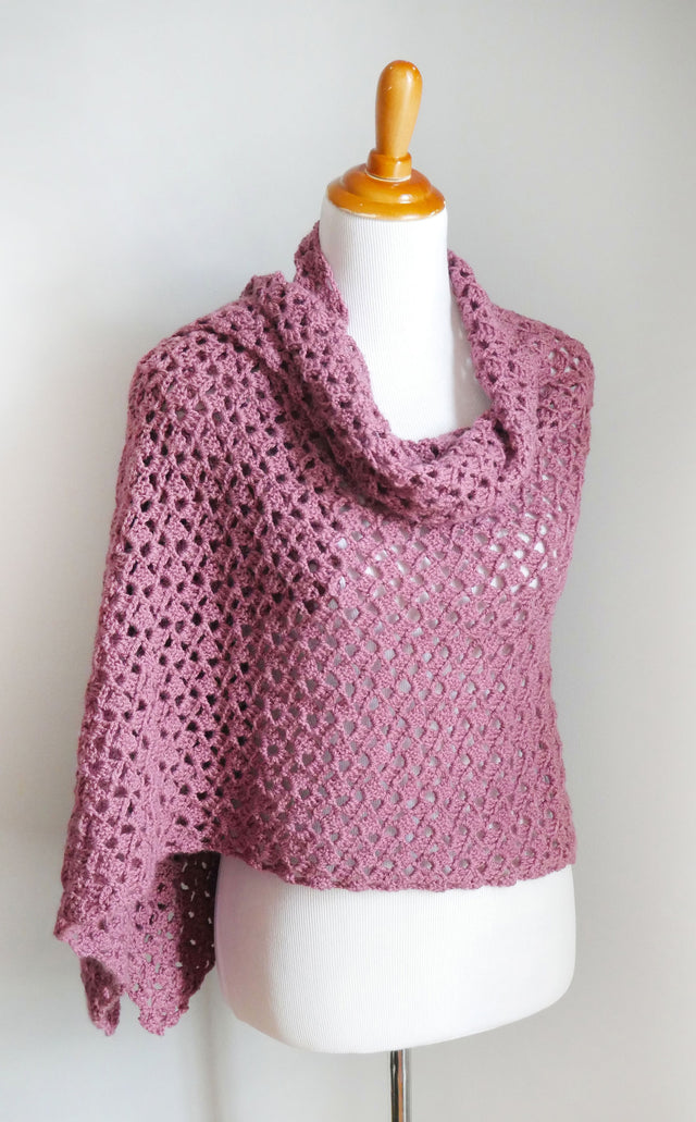 Designed by Fiber Flux. A delicate lacy shawl for a touch of warmth and a lot of style. Kit includes Mary Maxim Mellowspun DK yarn and pattern. Requires crochet hook H-8. Size 27 x 60". Intermediate Crochet.