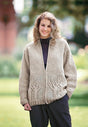 Discover the magic of the Tree of Life with this enchanting jacket pattern! Symbolizing fresh starts, inner strength, and personal growth. Let this design inspire you to turn everyday moments into something special. Picture yourself strolling along the shore or catching up with friends, wrapped in cozy comfort and timeless style. Whether paired with your favorite denim or layered over casual wear, this knit creation becomes a wearable reminder that every day brings new possibilities. Created with Mary Maxim Cloudspun Chunky weight yarn that offered 75 yds/50 g ball. We no longer make Cloudspun, but we have oodles of bulky-weight yarns that will be perfect for this project! You'll also need knitting needles size 7 (4.50 mm) and cable needles. Shopping List Cloudspun: Sz Sm-Med (16 balls), Lg (18 balls), XL (20 balls). Finished bust 43(46-50-53)" [109(117-127-134.5)cm]. Experienced knit.
