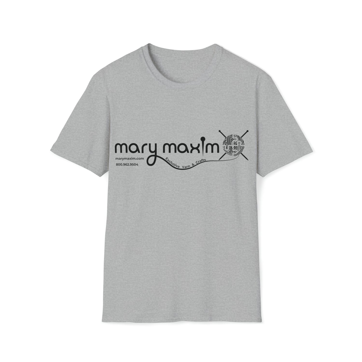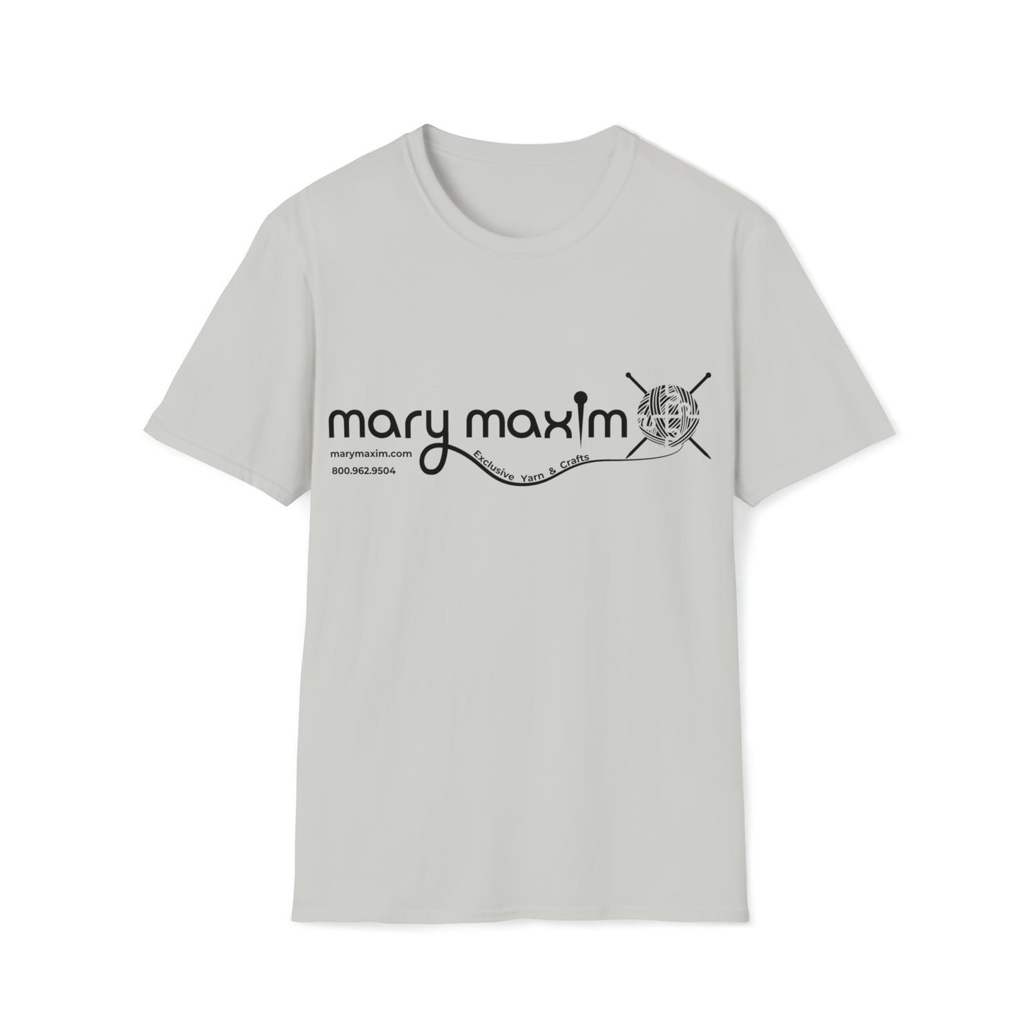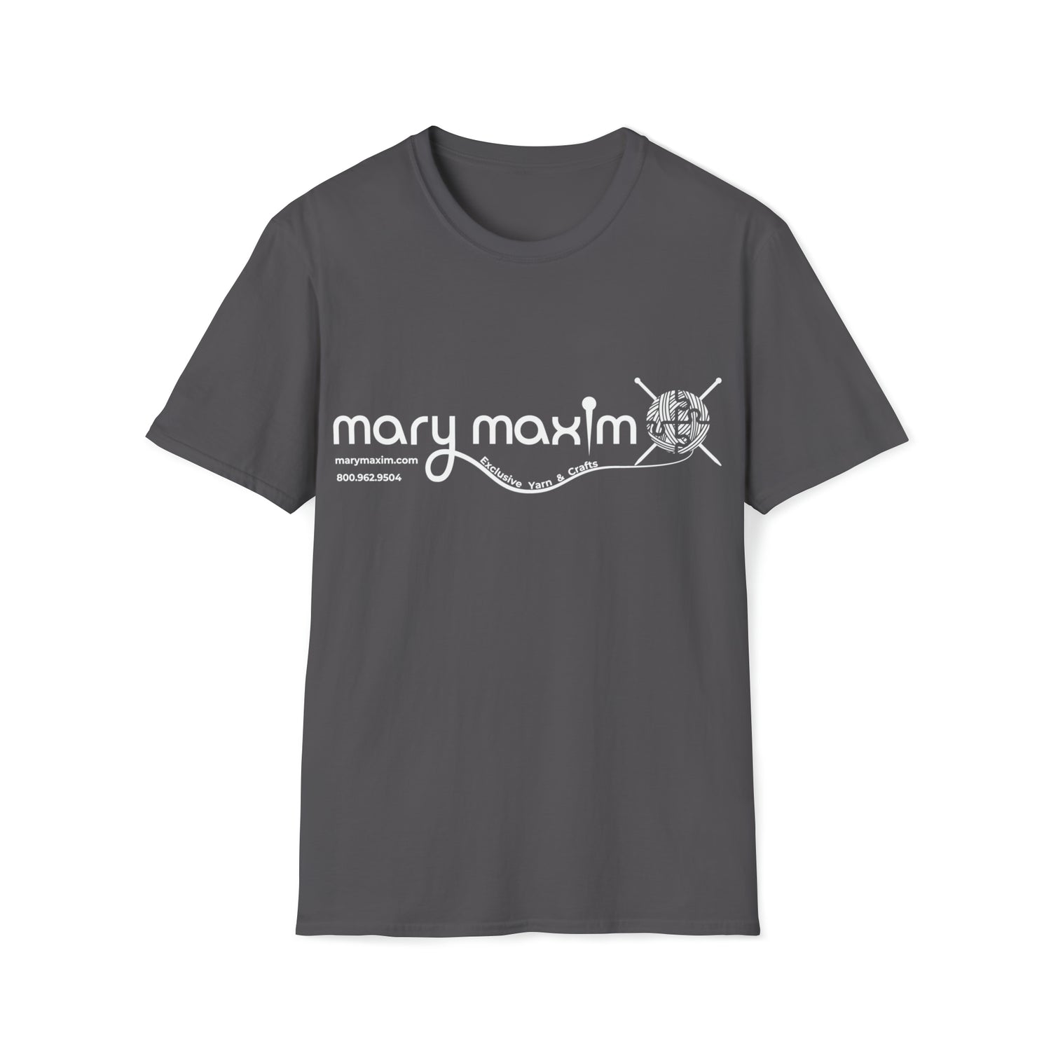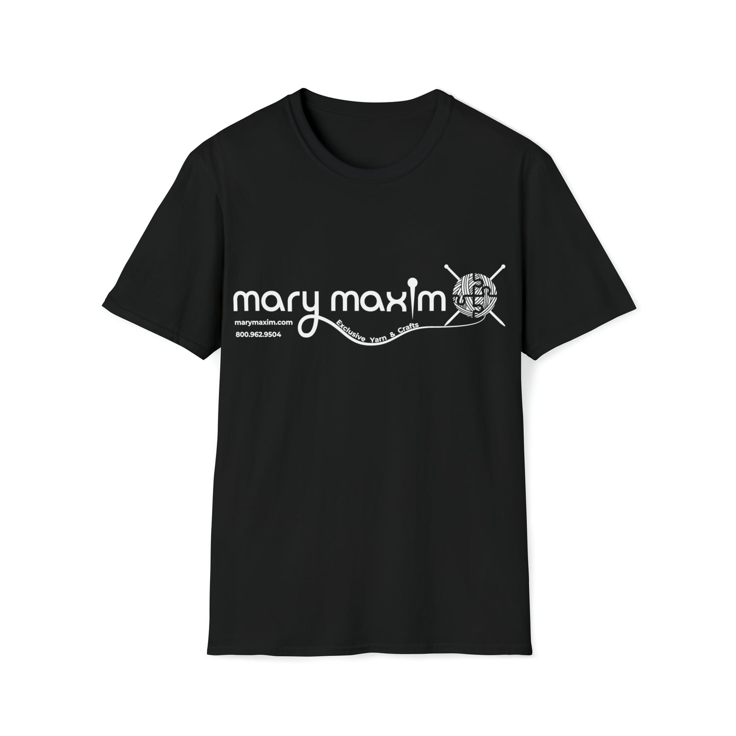 Mary Maxim Front Softstyle T-Shirt - White & Black Logo - Unisex