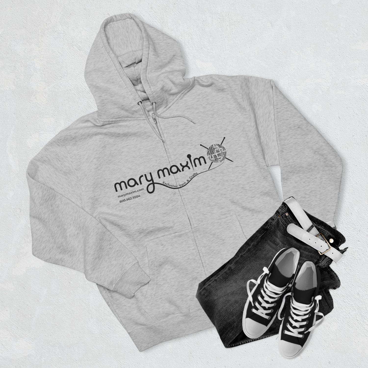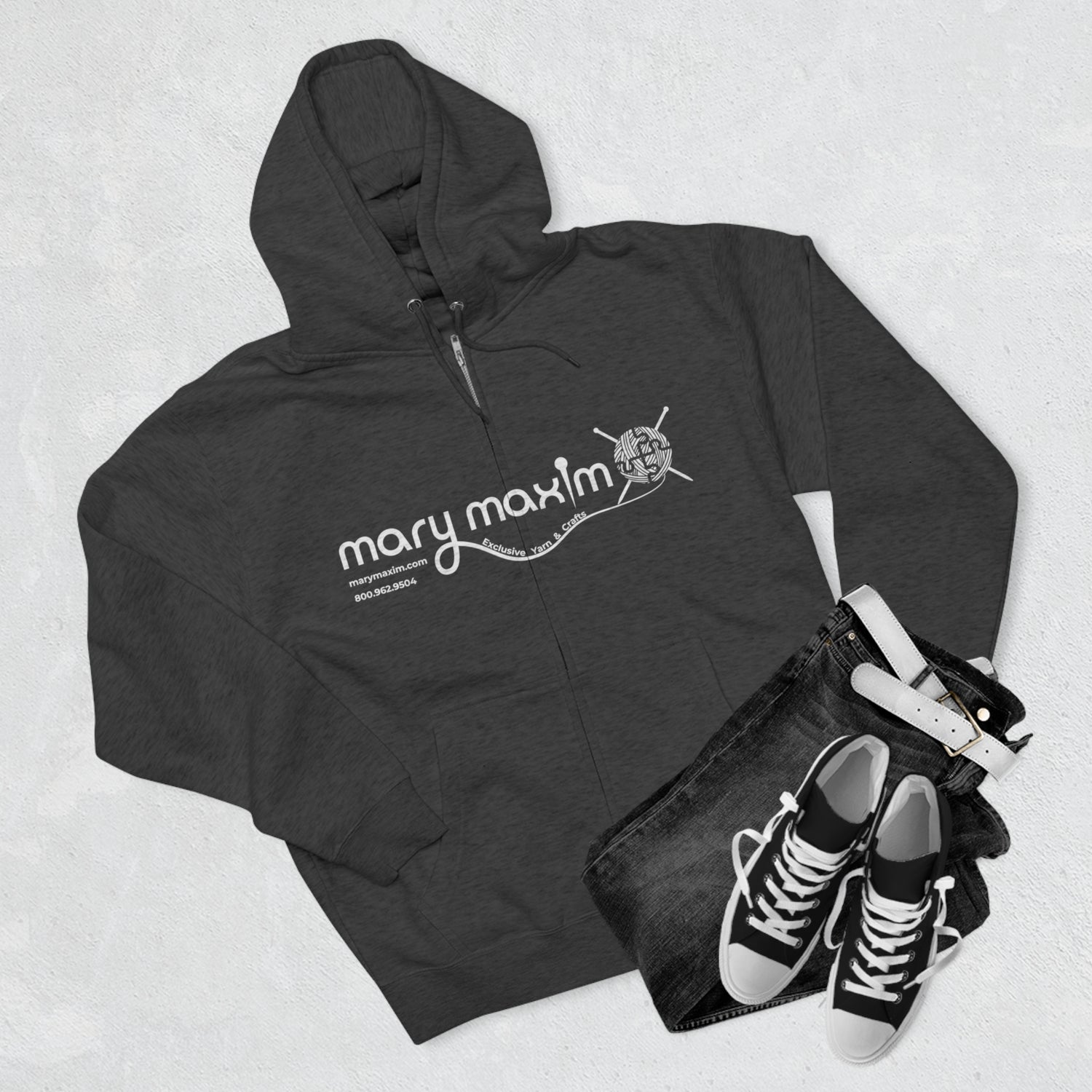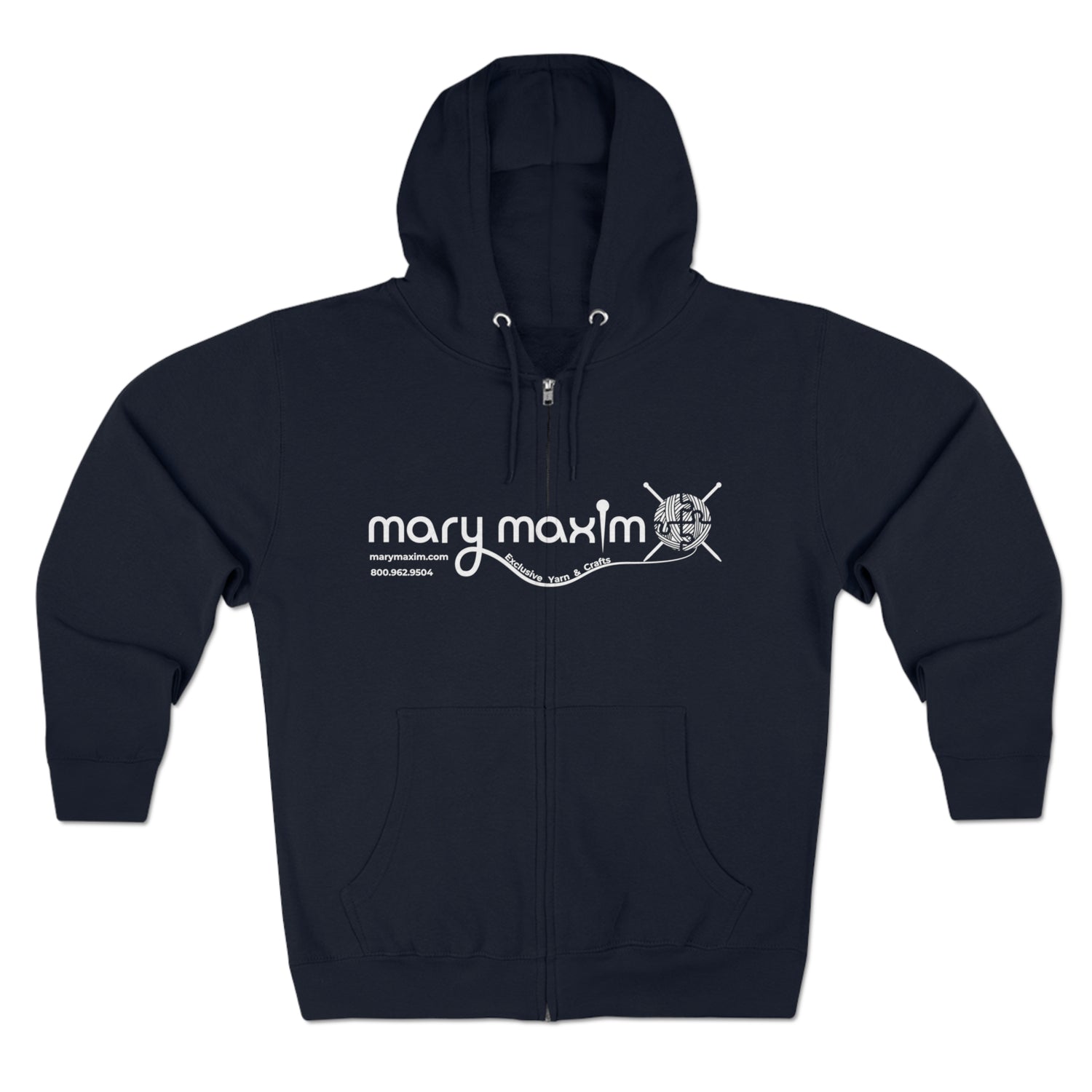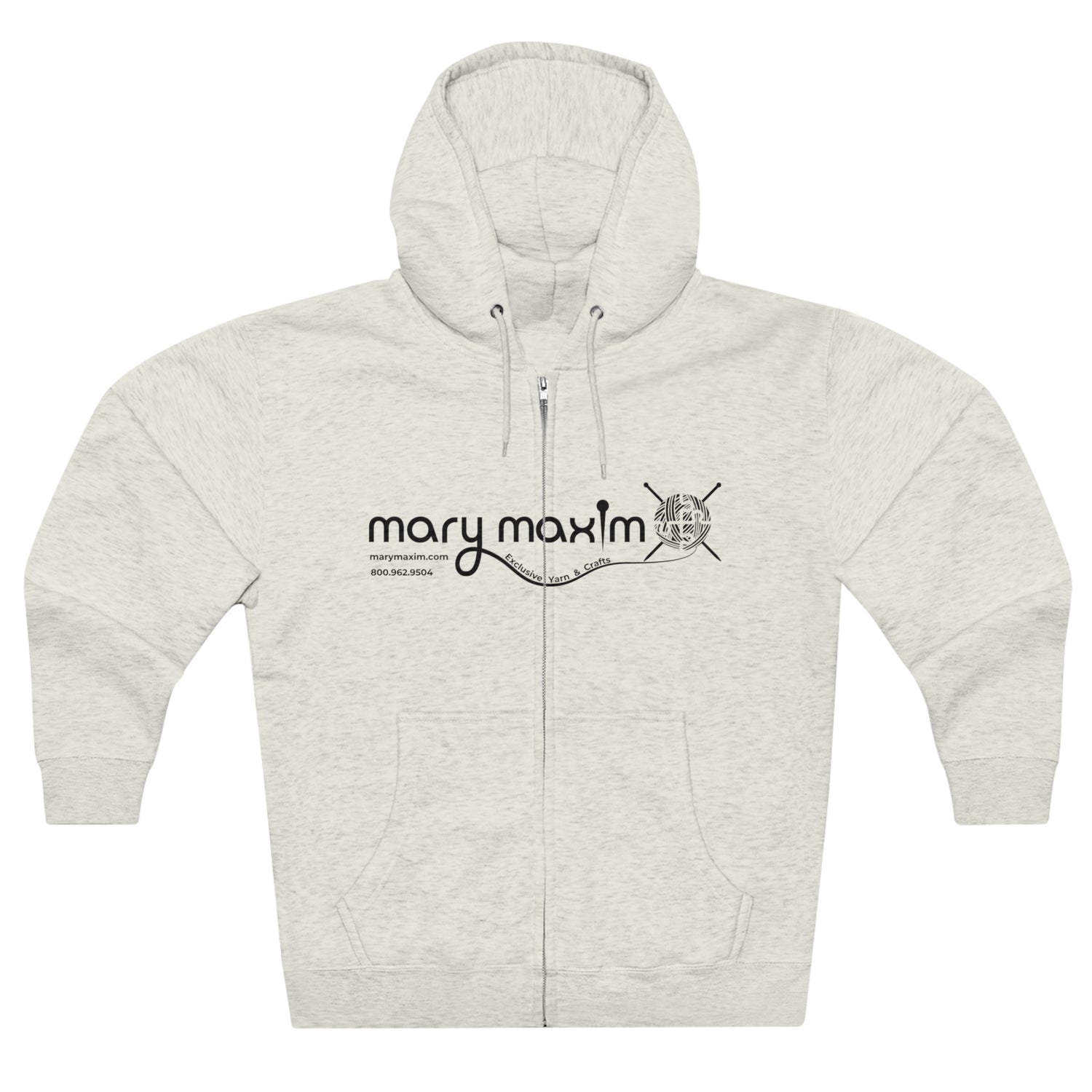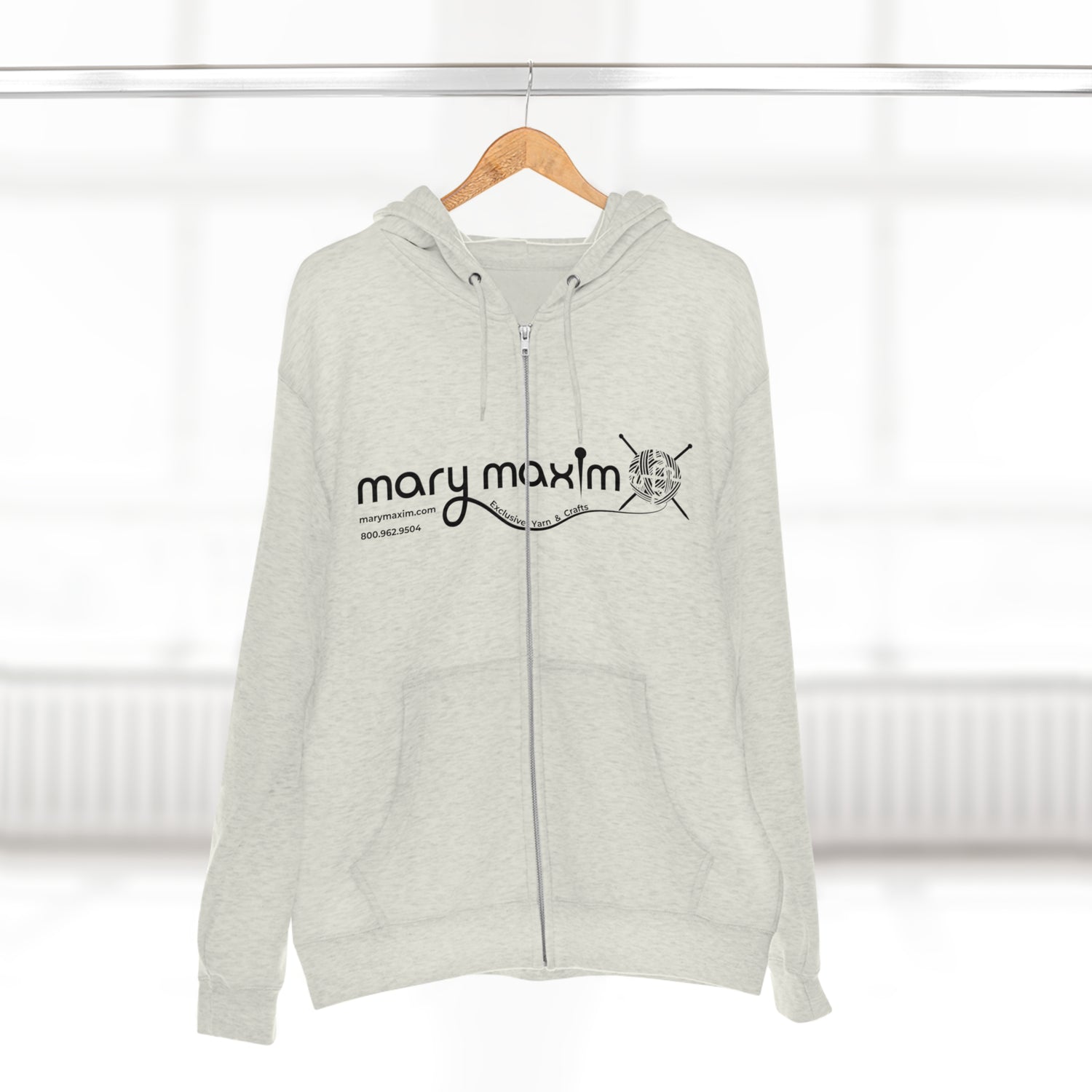 Mary Maxim Full Zip Hoodie - White & Black Logo - Unisex