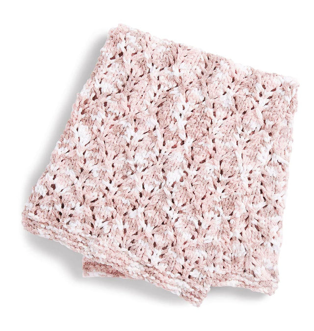 Knit this blanket using Bernat Blanket yarn. Requires 2 balls and 36" circular needle size 11 (8 mm). Size 38" x 40". Easy knit.