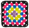 Effortlessly create a stunning retro style crochet blanket with the Free Red Heart Fiesta Fringe Crochet Granny Square Pattern! With Red Heart All in One Granny Square yarn, you'll easily change colors to create perfect 6" squares. Then, complete your blanket with Red Heart Super Saver for a beautiful finish. Get ready to get crafty and create a retro-style masterpiece! Materials needed: Version 1 - Red Heart Super Saver Aran (1 ball), Red Heart All in One Granny Square: 2 Balls Each Color - CCA Warm Wheat , CCB Soft Sky, CCC Lilypad, CCD Cream. Version 2 - Red Heart Super Saver Black (2 balls). Red Heart All in One Granny yarn: CCA Cyber Leaf, CCB Carnation Code, CCC Hyper Violet, CCD Dove. Also needed a crochet hook size I/9 (5.5 mm), tape measure, yarn needle. Finished size