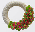 With this pattern, knit a colorful wreath and bring a little cheerfulness to your home decor! Created for the Mary Maxim Knit Club in 2015 using Mary Maxim Titan bulky-weight yarn, Mary Maxim Mellowspun, DK sport-weight yarns, and Red Heart Boutique Ribbon yarn. At the time, Titan offered 80 yds/3 oz, Red Heart Ribbon provided 42 yds/3.53 oz, and Ultra Mellowspun 174 yds/1.75 oz. Materials List: Titan Natural (2 skeins), Boutique Ribbon (1 hank), Ultra Mellowspun Green (35 yd piece), knitting needles sizes U.S. 7 (4.50 mm) and 19 (15 mm), and 12" round roam ring. Measures 12" diameter when completed.
