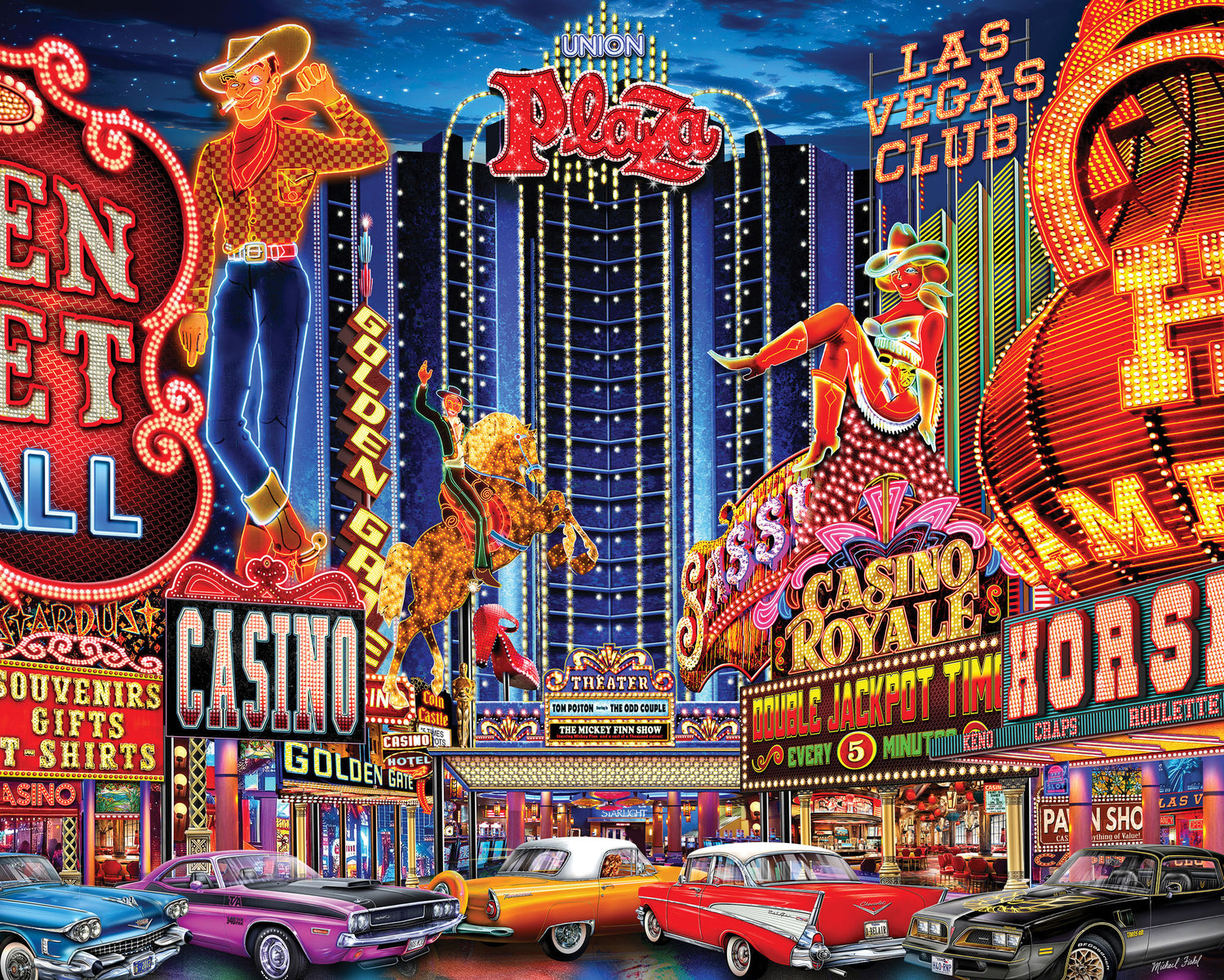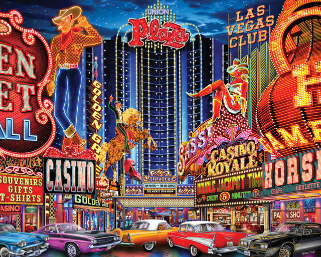 Bring the glitz and glamour of Sin City to your puzzle table with this vibrant 1000-piece jigsaw puzzle! Featuring iconic Las Vegas lights, dazzling signs, and legendary buildings, it's a love letter to the neon-soaked streets of the Strip. Perfect for Vegas enthusiasts and puzzle lovers alike, this 30 x 24" masterpiece captures the electric energy and unforgettable charm of America's most thrilling destination. Get ready to piece together some serious fun!