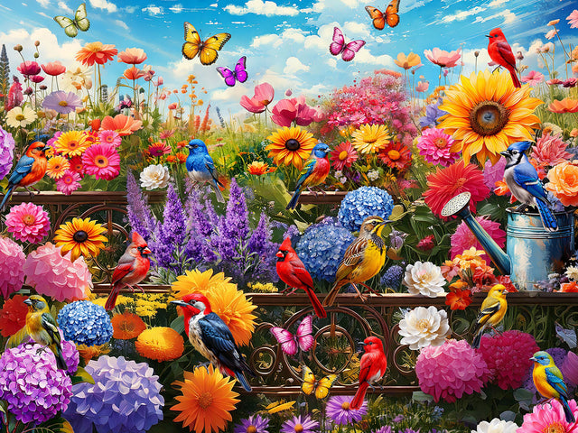 Piece together a garden full of whimsical wonder with our Songbirds in Bloom puzzle. Packed with colorful birds, vibrant flowers, and fluttering butterflies, this 500 piece jigsaw will transport you to a beautiful spring day. With a size of 24 x 18", it's the perfect activity for bird lovers and puzzle enthusiasts alike. Happy puzzling!