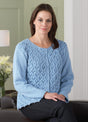 Knit this cardigan using DK/Sport weight yarn. Requires one pair knitting needles size 3 (3.25 mm) and one pair knitting needles size 6 (4.00 mm)  Pattern includes sizes 32-34, 36-38, 40-42, 44-46. Originally kitted in 2010, this kit included Mary Maxim Mellowspun yarn, which had 160 yards per skein on a 1.75 oz ball.