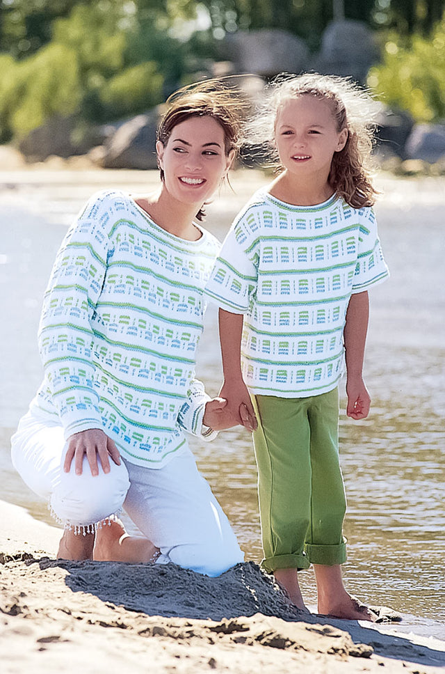 Knit a pullover sweater using this pattern. This timeless design was created using Bumblebee (not available) 100% cotton, DK sportweight yarn that offered 123 yds/1.75 oz ball. We offer an amazing variety of sport-weight yarns that will be perfect for this project, keep in mind yardage varies. Materials List: Patons Bumblebee (not available) Sizes 4-8 (10-12) Main Color 4(5 balls), CC1 2(2 balls), CC2 1 (2 balls). Also needed is a pair of knitting needles size U.S. (3(3.25 mm) and 6(4 mm). Finished chest measurement: 28(30-32-34-35 1/2)" [71(76-81-86.5-90) cm] Experienced knit.