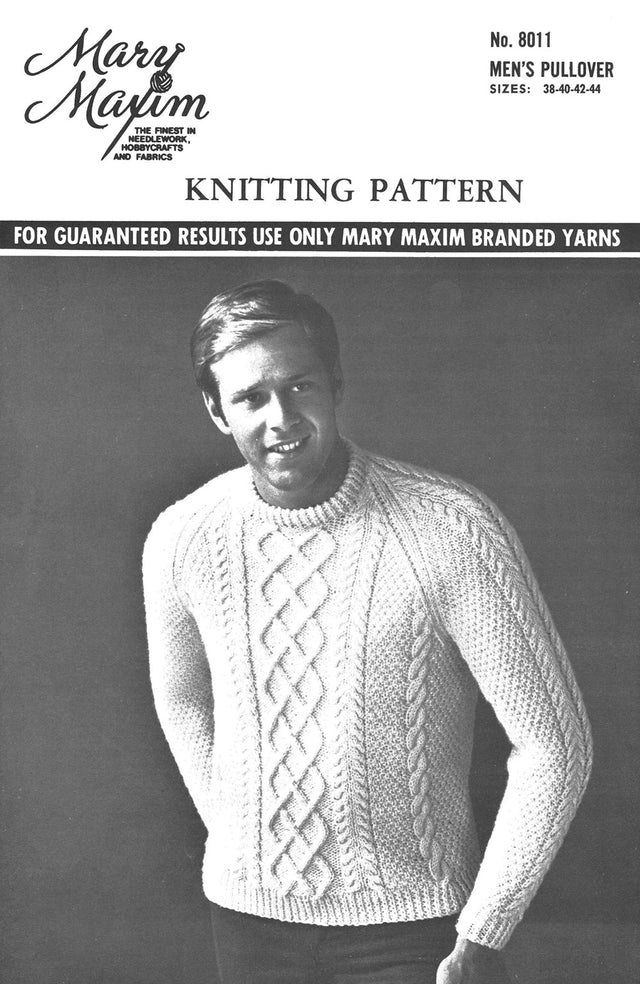 Craft a traditional men's pullover with our pattern. This classic cabled pullover will look sharp at the office, on the golf course, or out walking man's best friend. Features round neck and raglan sleeves. Designed using Mary Maxim Starlette worsted weight yarn that offered 140 yds per 2 oz skein at the time. Our collections feature a wide array of high-quality worsted weight yarns, including Mary Maxim Starlette, boasting a soft and durable composition in trendy color options. Materials List: Mary Maxim Starlette Size 38-40 (10 skeins). Size 42-44 (11 skeins), knitting needles sizes U.S. pair of 6 & 9, set of size 6 double point, and a cable needle. Note that color image C refers to this pattern only. The other designs are also available to purchase separately. A) PDL2545, C) PDL860, and D) PDL8006. Fits sizes 38-40-42-44—Intermediate knit.
