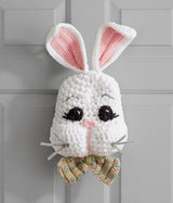 Hang this adorable bunny to welcome friends and family. Kit includes Mary Maxim Titan, Starlette and Best Value yarns, trims and pattern. Requires crochet hooks K-10.5 and N-15 and polyfill. Size 12" x 3" x 9". Intermediate crochet.