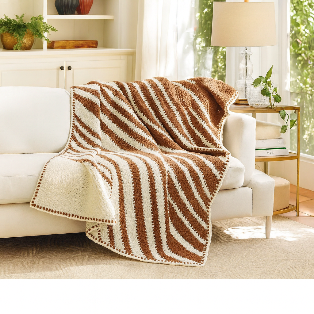Los colores de alto contraste le dan a esta sencilla manta de esquina a esquina un aspecto moderno instantáneo. El kit incluye hilos Mary Maxim Starlette y Bernat Super Value. Requiere aguja de crochet H-8 (5 mm). Tamaño 51" x 64". Ganchillo fácil.