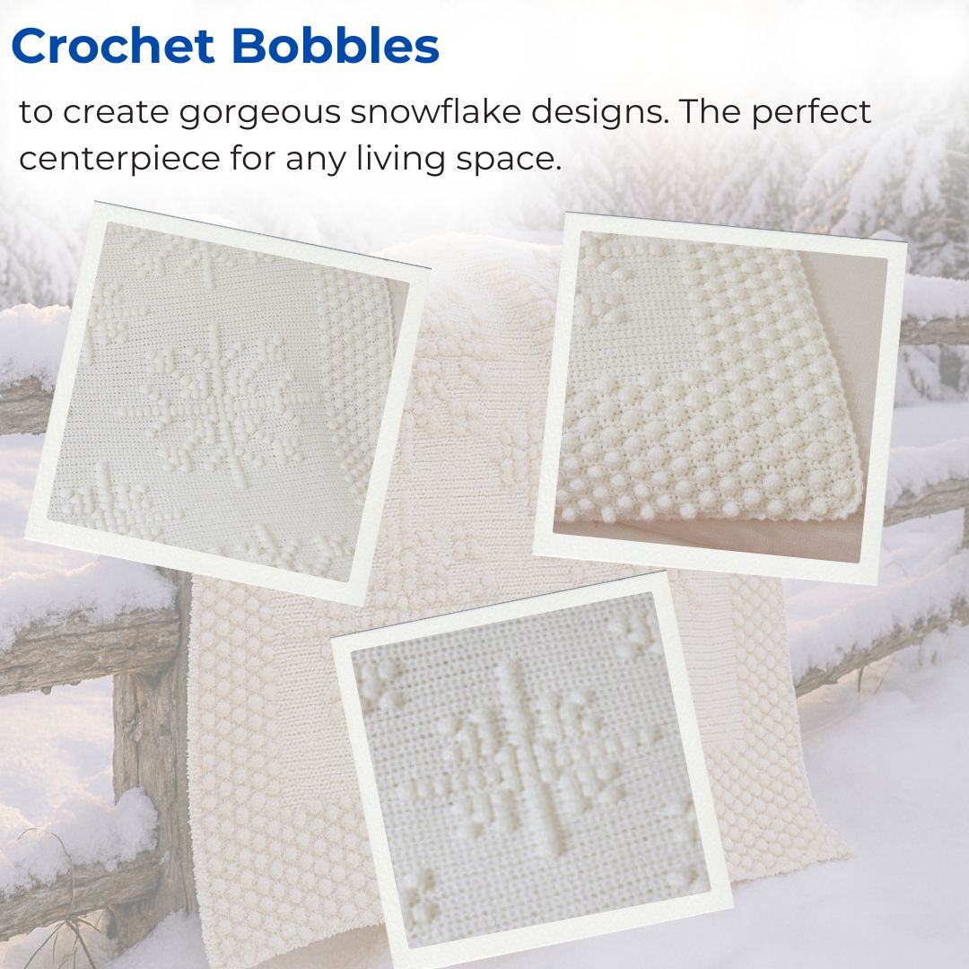 Drift away into a winter wonderland with this exquisite blanket. Kit includes worsted weight yarn and pattern. Requires crochet hook I-9. Size 42 x 54". Intermediate Crochet.