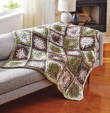 Patrón de manta de cama de bonitos cuadrados en fila de ganchillo gratis