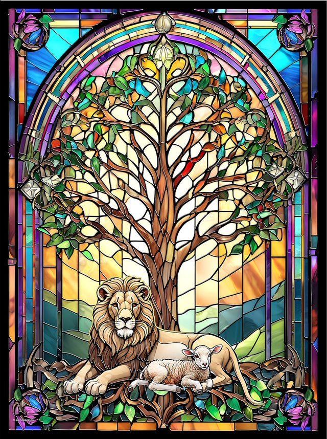 Discover the Tree of Peace Jigsaw Puzzle, a captivating 500-piece challenge featuring a stunning stained glass design of the tree of life, lion, and lamb. Measuring 18 x 24 inches, this puzzle offers both a rewarding activity and a beautiful display once completed. Perfect for puzzle enthusiasts seeking a meaningful and visually striking project that inspires calm and harmony.