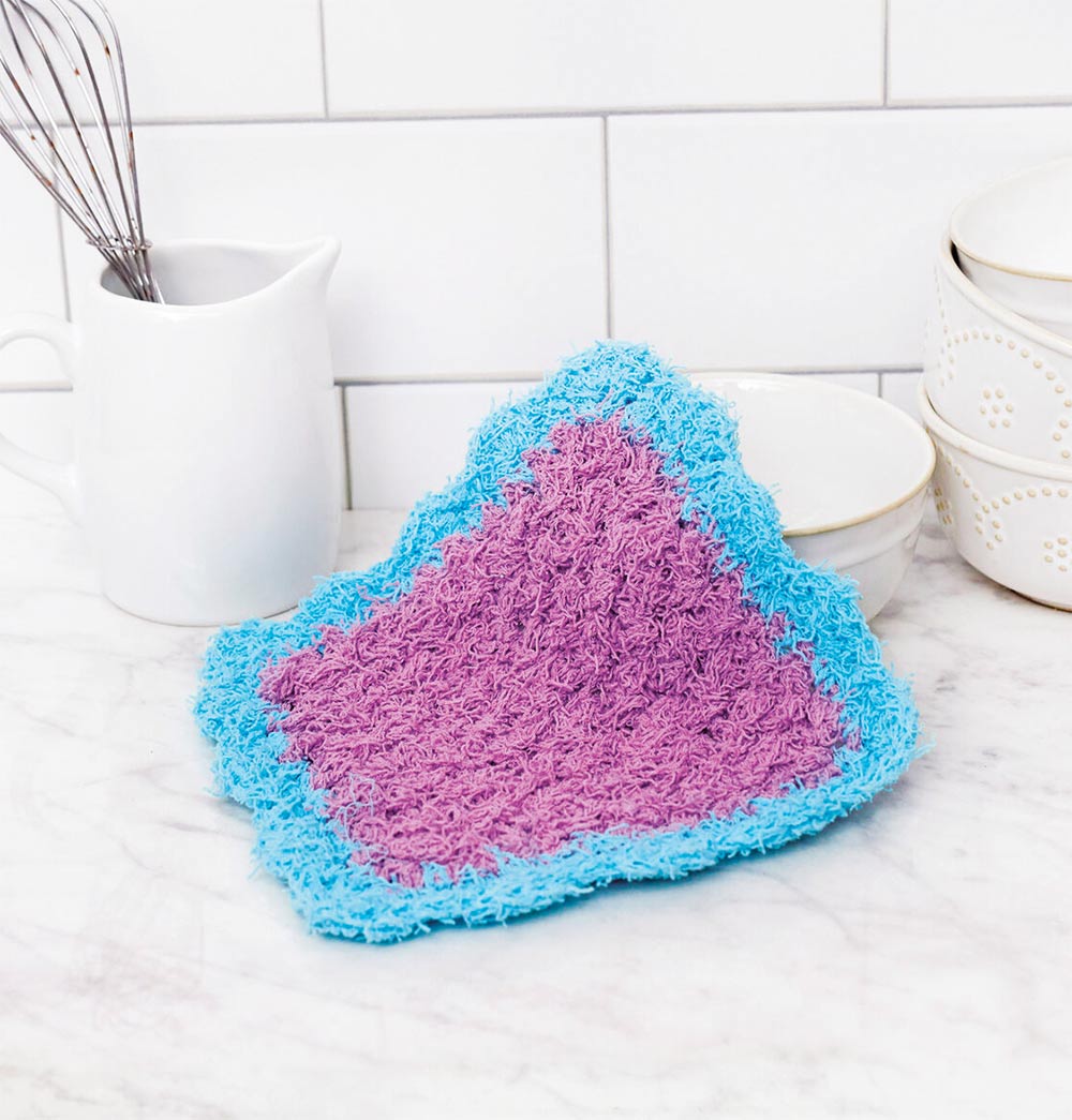 Teje esta toallita con bordes festoneados con hilo Red Heart Scrubby Cotton. Requiere 2 ovillos y aguja de crochet H-8.