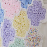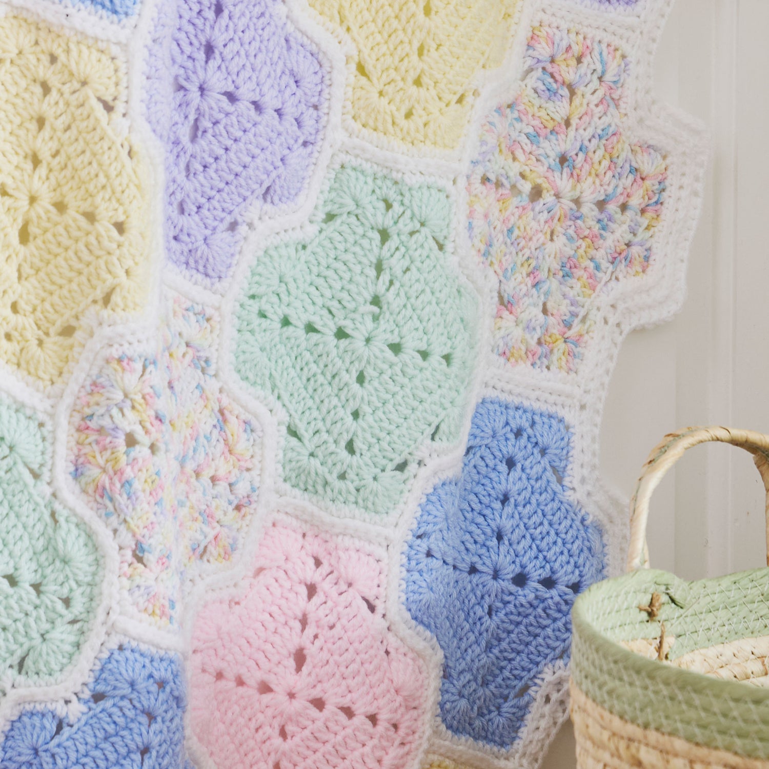 Designed by Julie Yeager Designs. Splashes of color enhance this quirky blanket for baby. Kit includes Mary Maxim Baby's Best yarn and pattern. Requires crochet hook G-6. Size 36 x 48". Easy Crochet.