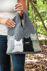 Embrace your love for cats with this adorable graphed crochet bag. Kit includes Mary Maxim Starlette yarn and pattern. Requires crochet hook G-6 (4 mm). Size 14.5" x 16". Intermediate Crochet.
