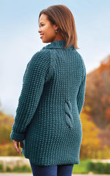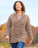 El suéter con cable ultrasuave es impresionante y te mantendrá cómodo y abrigado. El kit incluye hilo y patrón Mary Maxim Titan Bulky. Requiere aguja circular de 36" tamaño 10,5 y agujas de punta única de 14" tamaño 10,5, marcadores de puntada y aguja cable . Botones no incluidos.