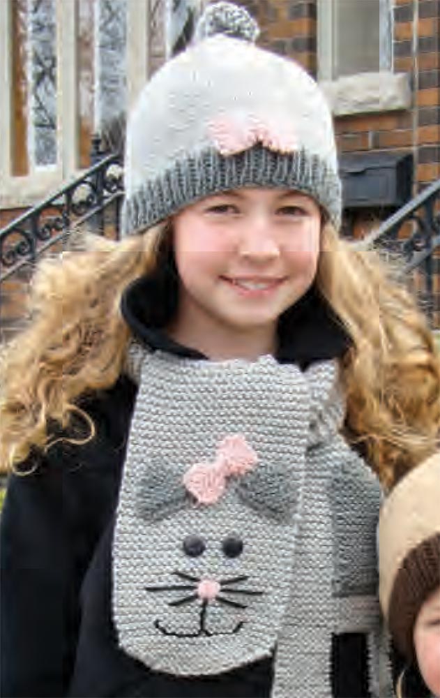 Teje el gorro y la bufanda de este niño con hilo peinado. Requiere un par de agujas de tejer de tamaño 5 (3,75 mm) y un par de agujas de tejer de tamaño 8 (5,00 mm) . El patrón incluye tallas de 2 a 8 años y de 8 a 11 años.