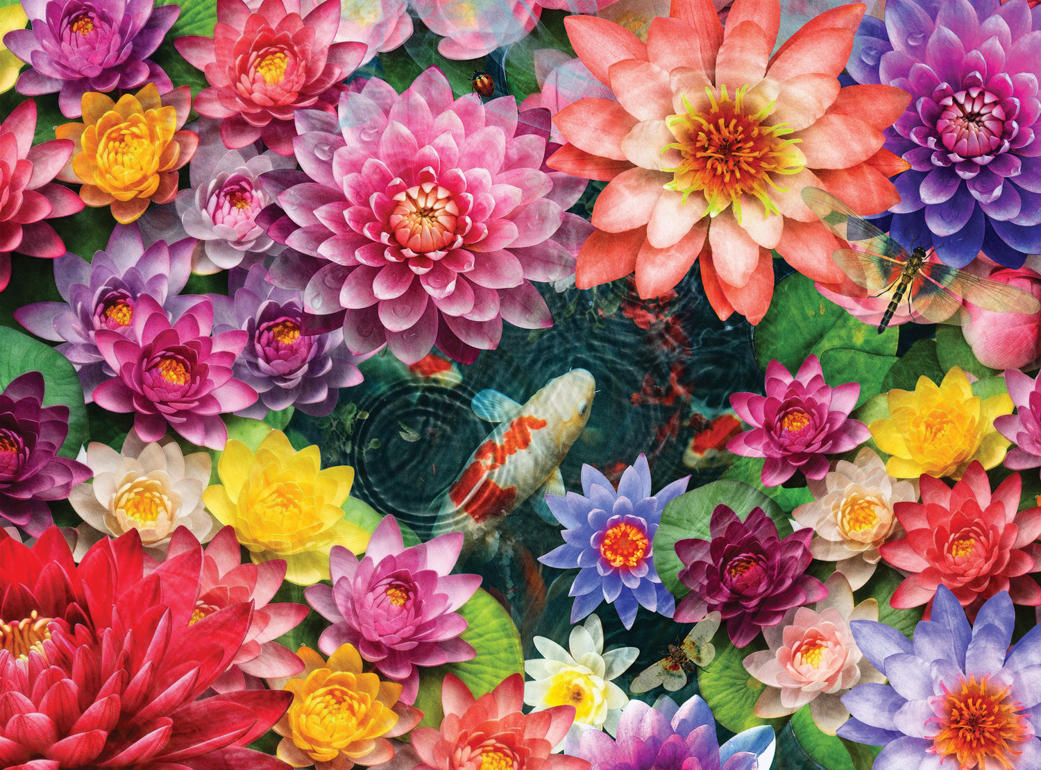 Sumérgete en un tranquilo mundo submarino con este impresionante rompecabezas de 1000 piezas. Observa cómo los elegantes peces koi se deslizan por aguas cristalinas adornadas con vibrantes flores flotantes en un fascinante despliegue de color y movimiento. Perfecto para los amantes de los rompecabezas que buscan un desafío tranquilo pero visualmente cautivador, esta obra maestra de 76 x 61 cm lleva la serena belleza de un estanque koi directamente a tu mesa. Ideal para tardes de relax, para conectar con la familia o para decorar una pared una vez terminado. ¡Deja que las tranquilas aguas y los brillantes tonos te transporten a tu propio paraíso!