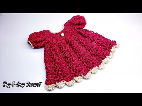 Diseñado por Bag-O-Day Crochet. Un vestido deliciosamente vaporoso para bebé con ribete festoneado y mangas japonesas. El kit incluye hilo Mary Maxim Starlette, hilo Premier Everyday Worsted (para adornos) y patrón. Requiere aguja de crochet H-8. Rosa de cinta y botón no incluidos. Talla 0-6 meses.