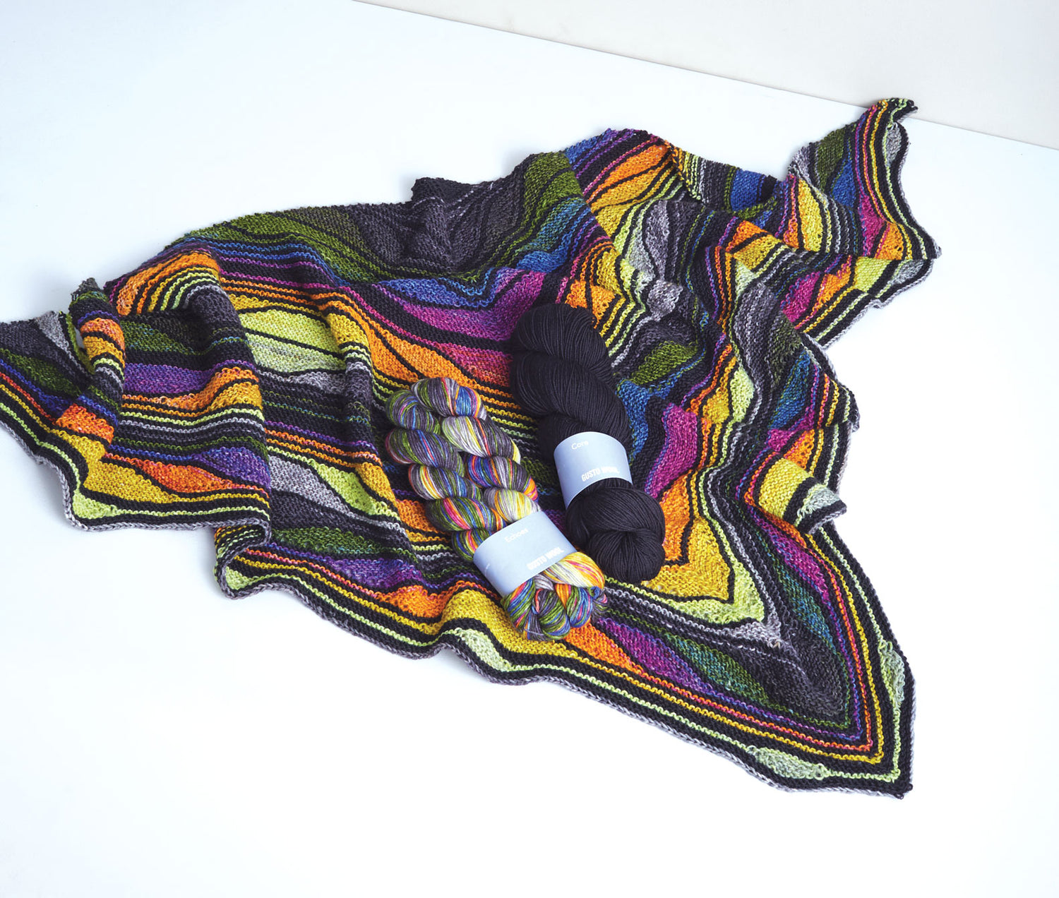 The Butterfly Shawl designed by MarinJa Knits is a stunning piece of knit artistry. Two 80% Merino Wool, 20% Nylon weight yarns, one solid, one hand-dyed variegated, are worked in short rows to create this amazing design. Highly detailed, well explained and illustrated pattern guides you with extra tips. Requires 36" circular needle size 4. Approximately size 71 x 33". Intermediate Knit.