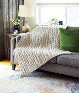 Teje esta manta con hilo súper voluminoso. Requiere aguja circular de 32" tamaño 17 (12 mm) .
