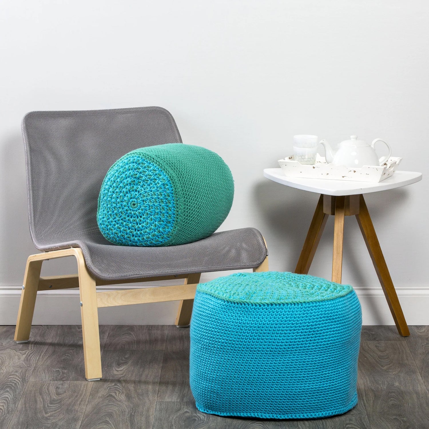 ¡Lleva tus habilidades de crochet al siguiente nivel con el patrón de puf de crochet gratuito de Premier! Este patrón gratuito crea un elegante puf relleno de 11 (17)” de diámetro y 15 (17)” de alto en dos tamaños diferentes, perfecto para agregar textura e interés a cualquier habitación. Todo lo que necesitas es hilo Premier Yarns Anti-Pilling Everyday Bulky ( (100 % acrílico antipilling; 3,5 oz/100 g, 87 yardas/80 m) y una talla L-11 de EE. UU. (8 mm). Gancho de crochet Para empezar. ¡Deja volar tu creatividad! Hilos Premier todos los días voluminosos (100 % acrílico antipilling; 3,5 oz/100 g, 87 yardas/80 m) • #1068-14 Turquesa (A) – 5 (2) bolas • #1068-18 Menta (B) – 2 (8) bolas