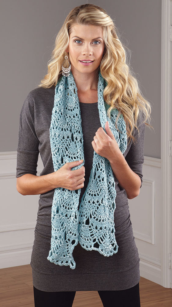 Teje esta bufanda con hilo de peso DK/Sport. Requiere aguja de crochet de tamaño F-5 (3,75 mm) . Tamaño terminado 7 x 62".