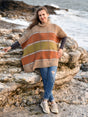 Designed by Tatsiana Matsiuk. Loose, oversized poncho with bold colorful stripes, knit back and forth on circular needles with vertical stripes added with crochet hook (size G-6). Kit includes Mary Maxim Mellowspun DK yarn and pattern. Requires 24" circ. needle size 4 and 29" circ. needles sizes 6 and 7. Intermediate Knit.
