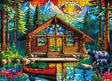 Escape into a serene lakeside retreat with this stunning 1000-piece jigsaw puzzle! Watch as a charming stained glass cabin comes to life across your table, complete with a peaceful canoe gliding through crystal waters and golden sunlight breaking over distant mountains. At 26.75 x 19.25 inches, this puzzle offers the perfect balance of challenge and satisfaction. Perfect for cozy evenings, rainy day adventures, or gifting to puzzle enthusiasts who appreciate beautiful scenery and intricate detail work. Let the calming landscape transport you while you piece together this colorful escape!