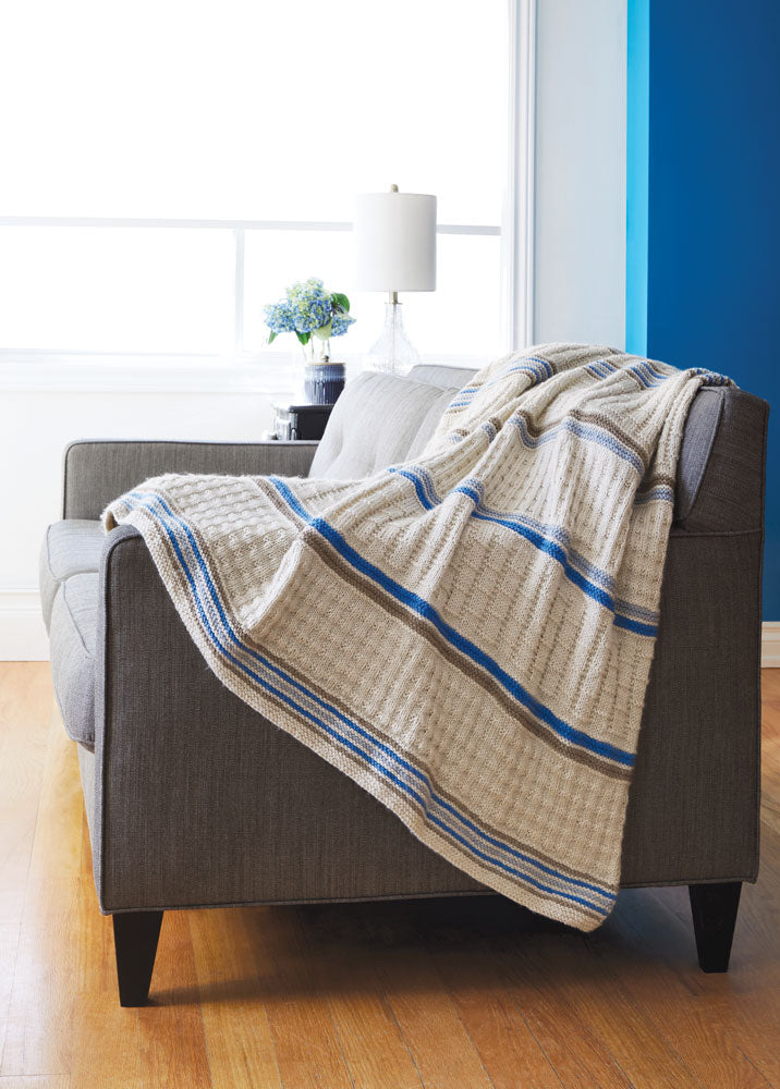 Tricotez cet afghan en utilisant le fil Mary Maxim Best Value . Nécessite 9 écheveaux et une aiguille circulaire de 36" taille 8 (5,00 mm) .