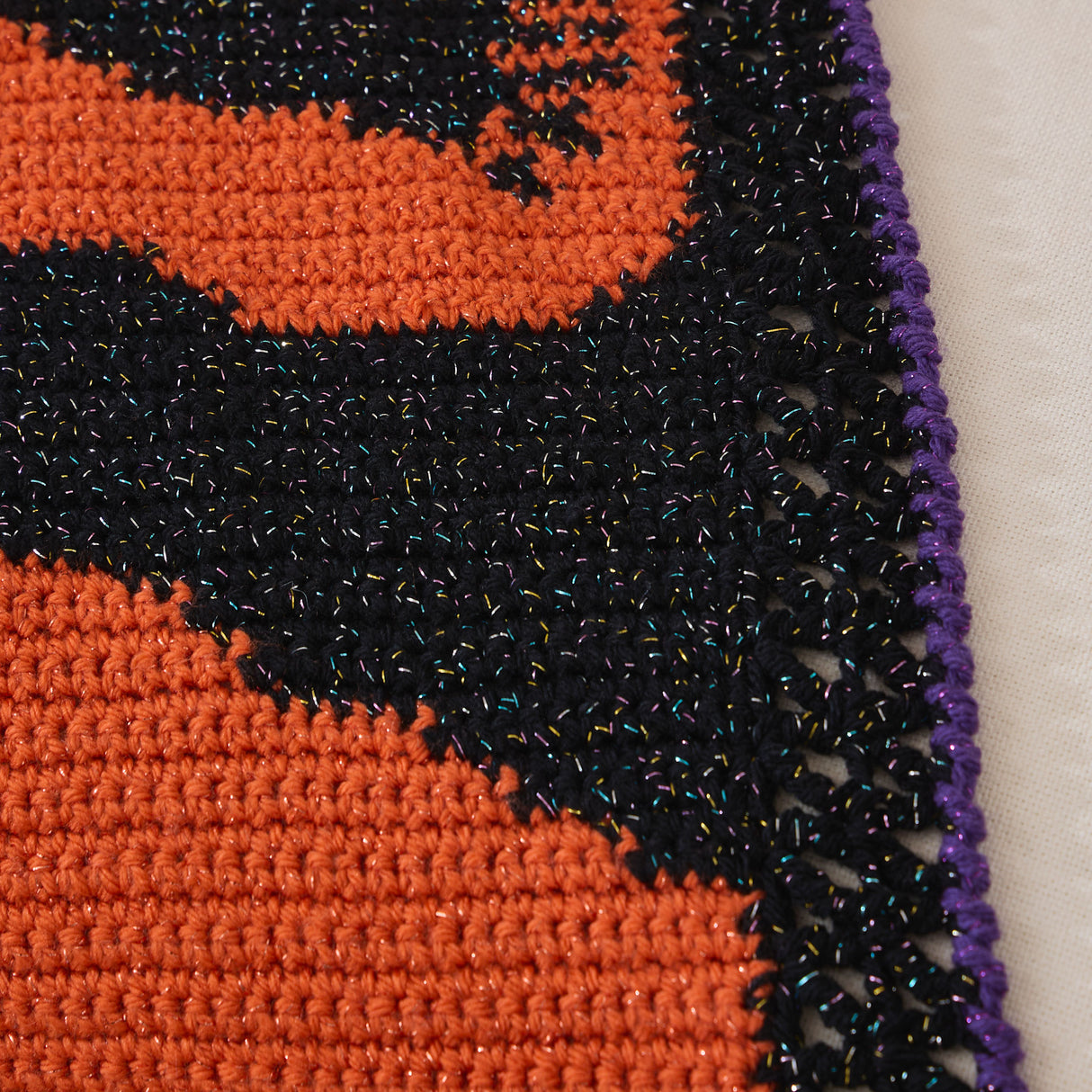 Transform your space into a shimmering spooky haven with this blanket. Kit includes Mary Maxim Starlette Sparkle yarn, Mary Maxim Starlette yarn and pattern. Requires crochet hook I-9. Size 49 x 56". Intermediate Crochet.