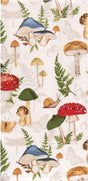 This charming tea towel brings whimsical woodland charm to your kitchen! Featuring a delightful array of mushrooms, snails, butterflies, and leaves on a soft cream background, it's as lovely to display as it is practical to use. The flat weave front pairs perfectly with an absorbent terry cloth back, making it ideal for drying dishes or adding a decorative touch to your countertop. Crafted from 100% cotton for durability and easy care, this 16 x 26" towel is a delightful addition to any nature-loving home.