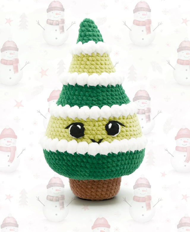 Spread holiday cheer by stitching up this delightful crocheted Snowy Fir Tree character! Perfect for the season, this charming project uses Premier Yarns Parfait Chunky yarn—a luxurious choice offering 131 yards per 3.5 oz ball. Watch loved ones light up when they receive this whimsical, handmade treasure that's as fun to make as it is to give. Discover our amazing selection of colors to personalize your project! Materials List: Premier Parfait Chunky Emerald, White, Chartreuse, and Acorn (1 ball each). Premier Anti-Pilling Everyday Worsted (180 yds/165m) Black (1 skein), crochet hook size 7 (4.5 mm) and E/4 (3.5 mm), tapestry needle, removable stitch markers, polyester stuffing. Finished size: 5.5" W x 9" H. Intermediate crochet.